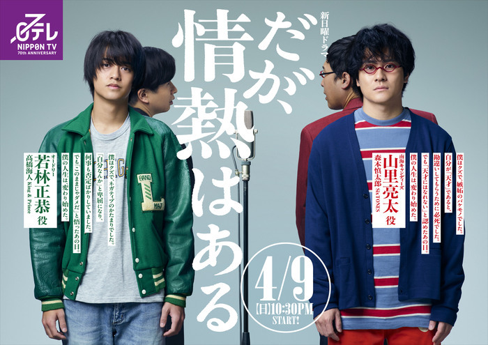 4月9日スタートの日本テレビ系新日曜ドラマ『だが、情熱はある』のポスター・ビジュアルが解禁となった。本作は、オードリー・若林正恭と南海キャンディーズ・山里亮太の2人の半生を描くドラマで、若林正恭役を髙橋海人(King & Prince)、山里亮太役を森本慎太郎(SixTONES)が演じる。