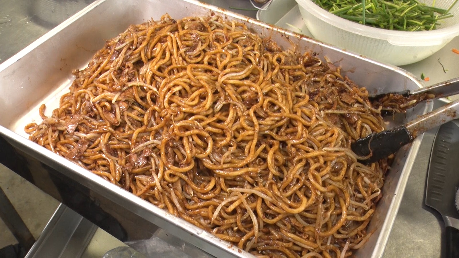 そんな2人が挑んだのは8人前の『横浜中華満載!ジャンボスターチャーハン』。プレートの中央には、しょう油でコクのある味付けにした巨大な黒チャーハン1.1kg、そこにエビやイカをふんだんに使った海鮮あん400gをかけた、あんかけ黒チャーハン1.5kgが。その周りには、長さ8cmの超ジャンボ餃子4個、幅3cm長さ5cmの極太春巻き4本、超巨大ゴマ団子4個、豆苗ニンニク炒め200g、大ぶりのエビマヨ8個、ニンニクソースをかけて蒸しあげたホタテと、渡りガニのネギしょうが炒め150gが並ぶ。仕上げに横浜DeNAベイスターズにちなみ、星型にした卵を飾れば完成。総重量は3.4kg超え。制限時間は50分。