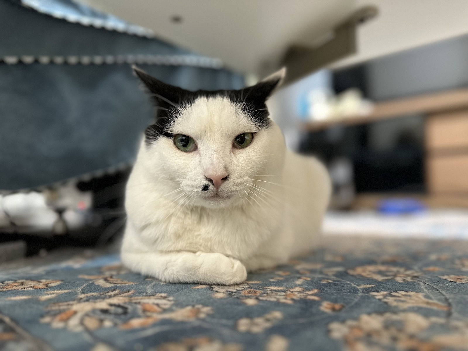 ケージオープンから15分、モンローはそっとケージから足を踏み出し、外の世界へ。部屋に置かれた様々なものに興味を示しつつ、ダンボールハウスで爪とぎをしたり、先住猫のニオイがついたキャットタワーに登るなど、大冒険を繰り広げた。