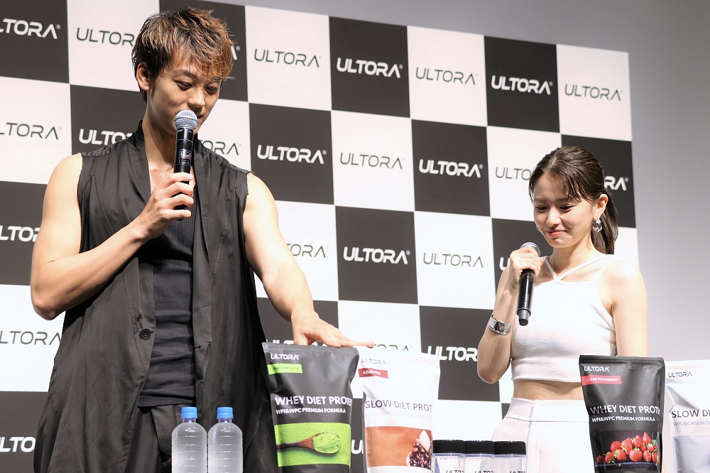 俳優・竹内涼真と山本舞香が都内で行われた、プロテイン「ULTORA」の新CM記者発表会に登場。アンバサダーに就任し、自身が出演する新CMをお披露目した。