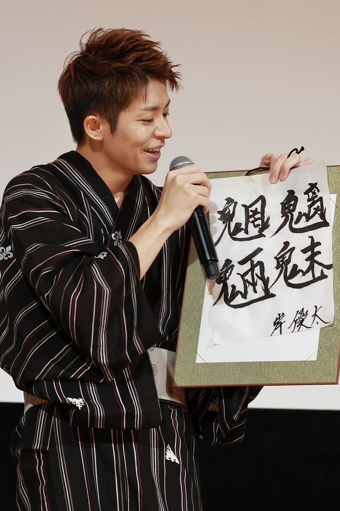 岸「シンプルに調べて四字熟語で僕が一番かっこいいと思った。人生で初めて、この漢字書いた。この先もう一生書かない字。魑魅魍魎ぐらいヤバいってことで、この映画が」と説明した。MCから「ちなみに魑魅魍魎の意味って?」と聞かれると、岸は「やばいってことですよね?なんかやばいってことなんで。Gメンもやばいっす、とにかく!」と押し切り会場は笑いに包まれた。