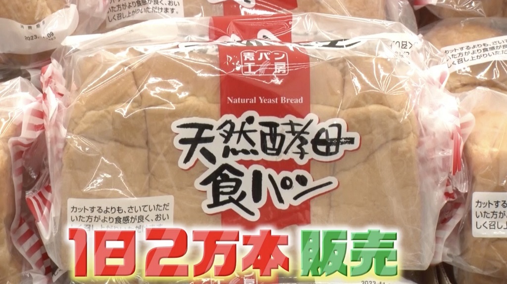 ジョーさんも一番オススメだという、一日2万本売れている『天然酵母食パン』。1本284円という安さにもかかわらず、1.8斤ほどの大きさがある、ボリューム満点な食パン。“新商品ハンター”の舞さんは「天然酵母を使っていてこの価格はすごくコスパがいい」と話し、ジョーさんは「練乳が入っていてほのかに甘い、高級食パンみたいな味がする」と絶賛した。