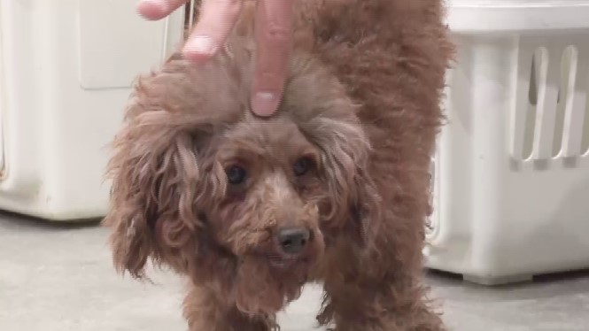 二人の前に現れたのは、廃業する予定の高齢のブリーダーからのレスキューで行き場がなくなったトイ・プードル。全体的に毛がボサボサであまり手が行き届いていない状態で、動物病院の箱崎加奈子先生が「女の子なんですけど、赤ちゃんがあんまり産めなかったみたいで、“使えない”っていう理由で居場所が…」と衝撃の事情を説明。