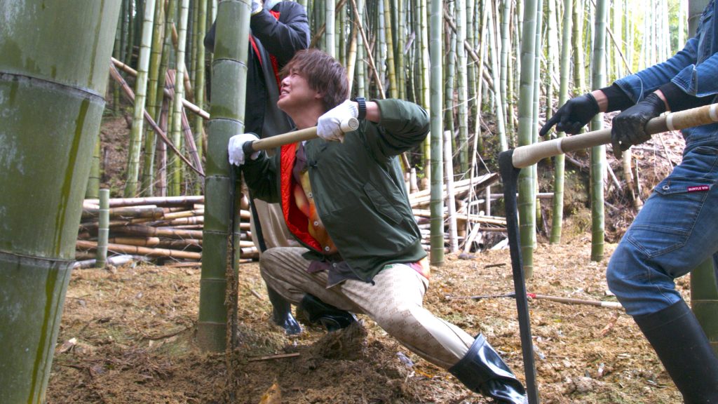 3人が収穫したけのこを並べると、大きさの違いは歴然。大中小と並んだたけのこに、「(宮川のたけのこは)ちっちゃ!」「携帯の電波みたいになってますよ」と、ぺこぱがいじって竹林には笑い声が。大きさは違えど3人とも無事にたけのこを発見することができ、その後に登場するたけのこのフルコースに期待を膨らませ、収穫作業を終えた。