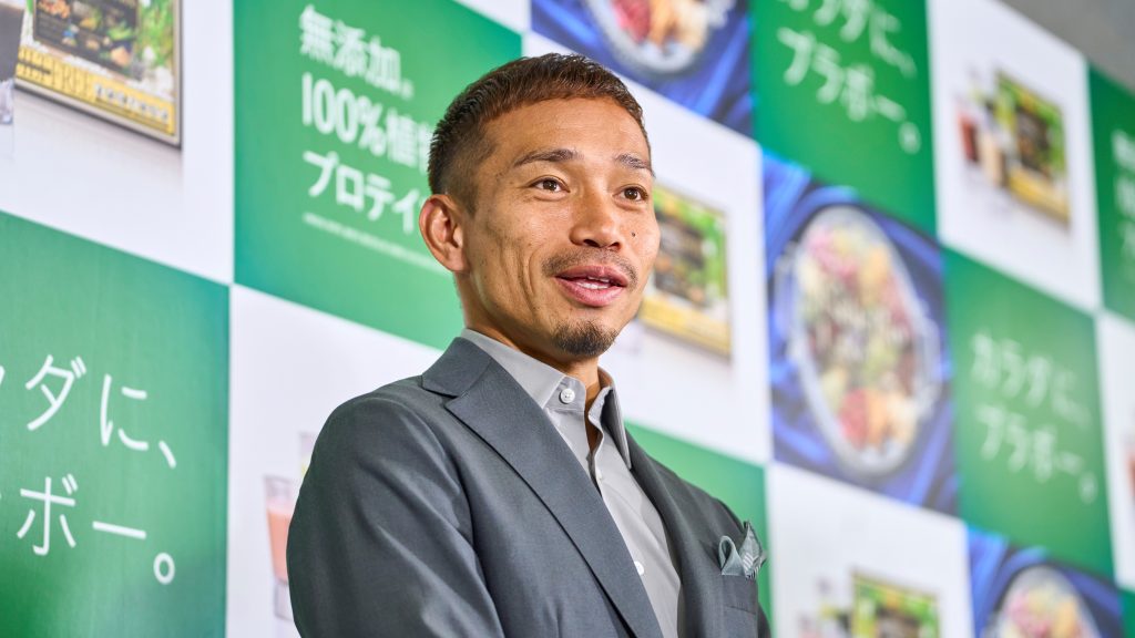これまでプロテインをあまり飲まなかったという長友だが、今回の商品は「添加物が一切入ってなく身体に優しいので、これだなと思って飲み始めた。味もおいしいので、毎日愛用しています」とアピール。