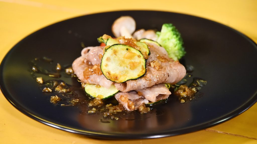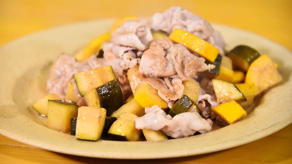 2品目は暑い夏にピッタリだという、『ズッキーニのピクルス炒(いた)め』。緑色のズッキーニに加え、柔らかく生食に向いているという『黄色ズッキーニ』を、梅酢やショウガ、シソなどで作ったピクルス液に一晩漬け込んだピクルスで、豚肉と手早く炒めていく。宮川は「うまい、さっぱり。食欲ないときに食べられます」と語り、2種類のズッキーニのピクルスについて「見た目だけじゃなく、食感も違う」と称していた安田も、そのおいしさにうなずいていた。