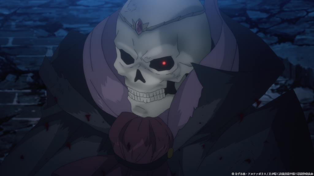 第二十四夜(話)のタイトルは『魔人VS.竜人』。リミア王国の王都城外では、深澄識(声:津田健次郎)と御剣(声:斉藤壮馬)による激戦が繰り広げられていた。リミア王国の勇者・音無響(声:加隈亜衣)は「王都を破壊したあの竜を、共に討たせて」と識に言うが識はそれを許さず、守りに徹するのであれば、負傷しているウーディ=バイラ(声:村井雄治)を助けることを約束する。リッチが聖者を救うことに驚く一同だが、響は識を信頼して約束をするのだった。