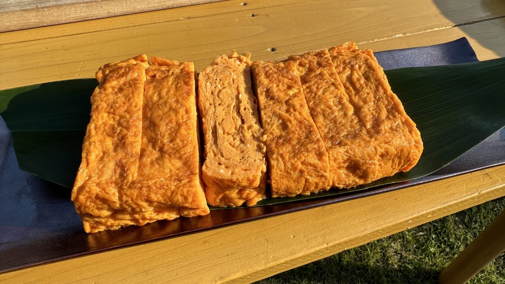 続いての料理は、「夢王の寅焼き」。寅焼きとは、しま模様の焼き目が美しい“厚焼きたまご”のこと。まず、昆布とカツオの合わせだしに砂糖、塩、濃口しょうゆを入れて混ぜ合わせる。だしが冷めたら、たまごを入れて泡だて器で白身を切るように混ぜ、何度も返しながら分厚く焼いていく。できたてにかぶりついた宮川は「うわ~、うま!味濃い、キレがいいです、焼いてもサラっとしてる」と、大きな厚焼きたまごでもいくらでも食べられるとコメントした。