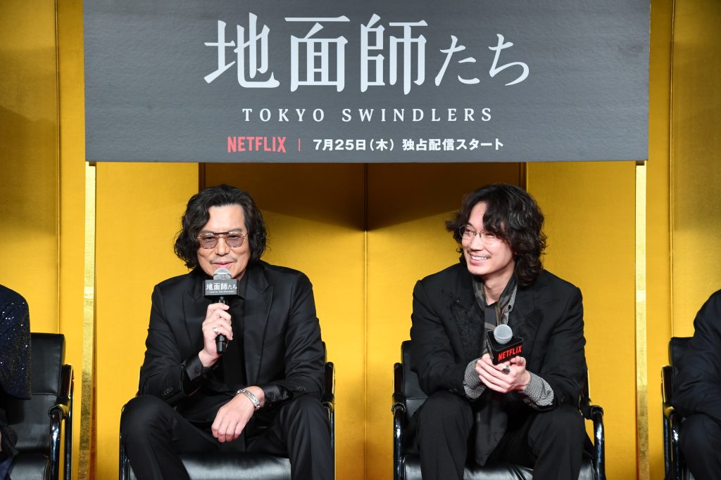 俳優の綾野剛、豊川悦司、北村一輝、小池栄子、ピエール瀧がNetflixシリーズ『地面師たち』の完成報告会に登場。40テイクを超えたという撮影現場での裏話や、“100億円”の使い道について語った。