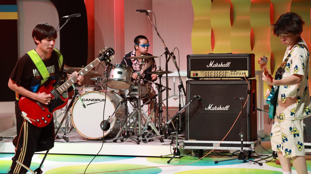 そして、『俺に真実を教えてくれ !!』のテレビ初生演奏がスタート。演奏が始まると、先ほどの高校生らしい初々しい姿が一変。ロックもパンクも詰まった熱いサウンドを軽快に走らせるドラムとギターの大人顔向けのテクニックと、暴れ回るボーカルのパフォーマンスで、スタジオが一気にライブハウスのような雰囲気に。