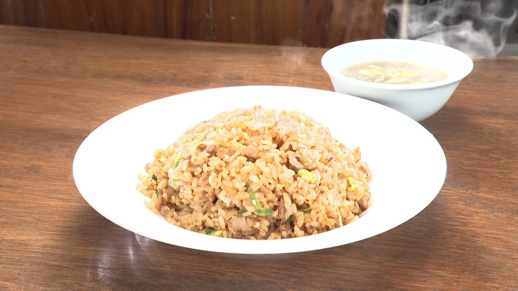 店主は2代目の山肩政剛さん(54)。息子たちも店で働いている。名物の『パラパラ焼めし』を2人同時に炒(いた)めるのは、長男・聖弥さん(28)と二男・俊介さん(26)。並んで作るチャーハンは動作が全てシンクロ。互いのフライパンに調味料を入れ合うなど、神業の如き連係プレーだ。三男・大晃さん(25)は同じビルでダイニング・バーを営んでいる。