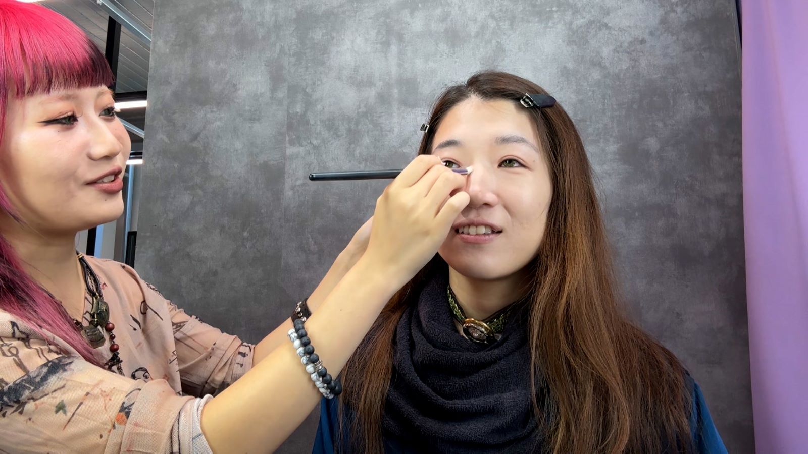 「顔立ち的にかわいらしさがあるので、優しいかわいさみたいな。そこは生かします」と、メイクをスタートする葉月さん。今回綾乃さんが受けたのは、自分でメイクを再現できるように葉月さんからレクチャーを受けながらメイクをしてもらうコースで、お値段は4万5千円。