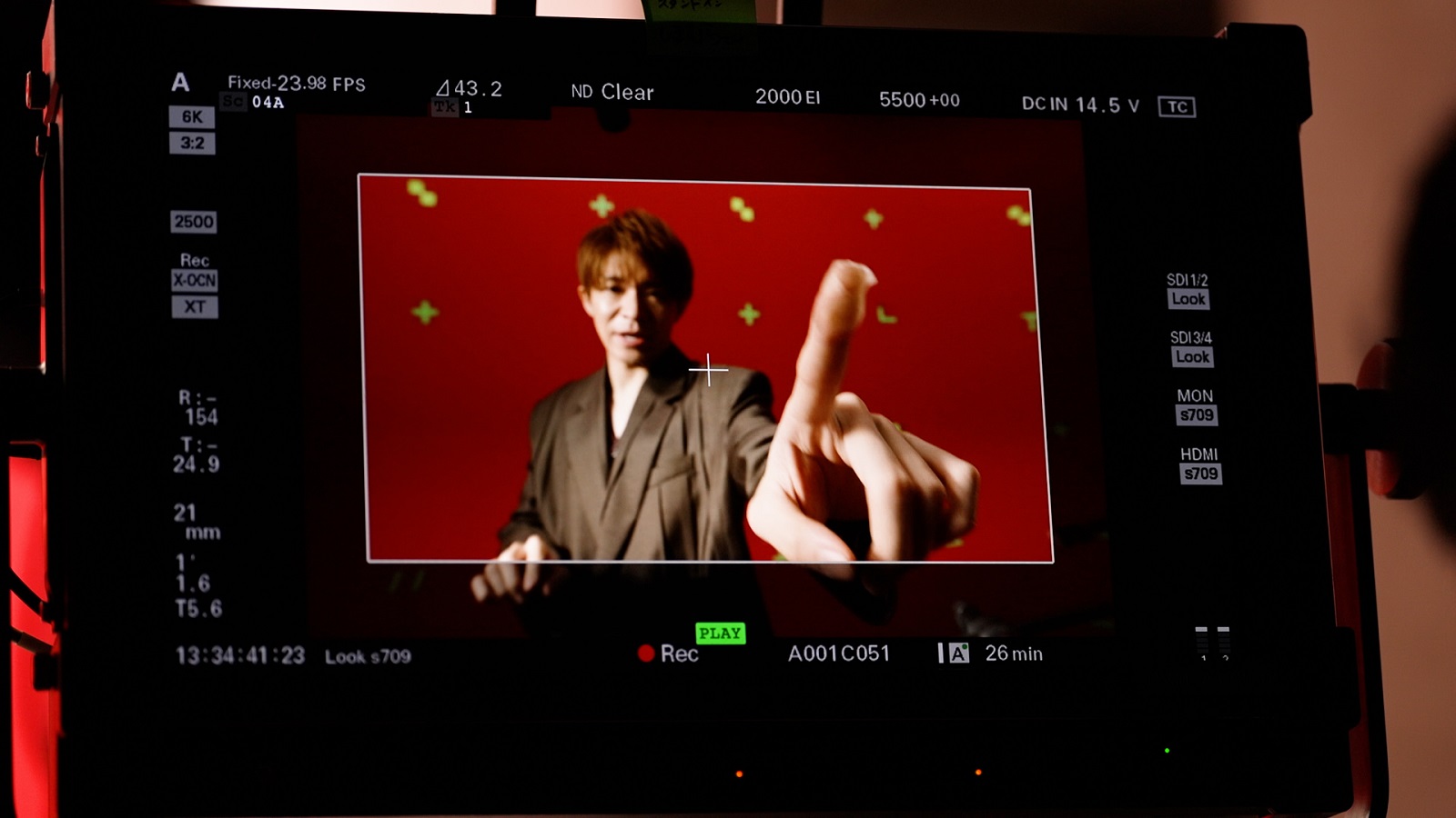 撮影時には、スーツ姿の岸がスタッフ皆に元気よくあいさつしながらスタジオへ。『モーションコントロールカメラ』と呼ばれる高性能なカメラで撮影がスタート。驚くほど高速かつ大胆なカメラの動きに、岸はまったく動じることなく表情管理を完璧にこなした。