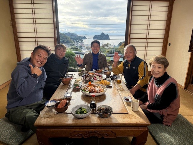 漁を終え、港に帰ってきた峰さんたち。お母さんが獲れた魚などを使って絶品の手料理を振る舞ってくれた。