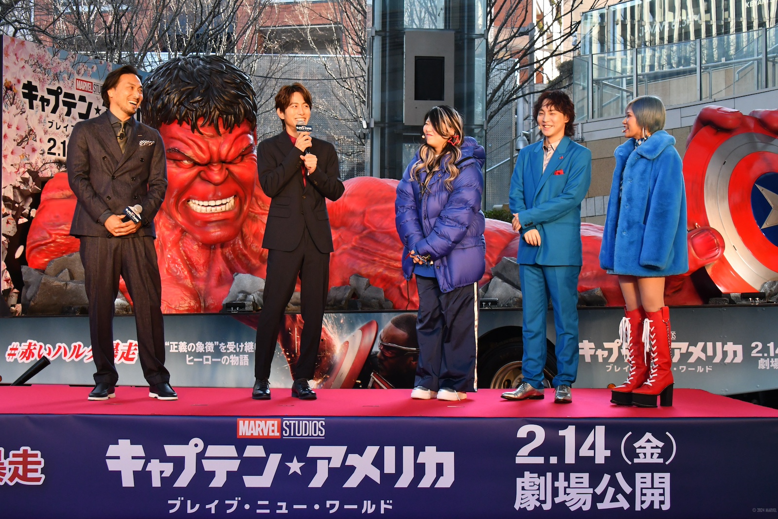イベント終盤には本作の大ヒットのための願掛けを実施。レッドハルクをインスパイアし真っ赤にコーティングしたレッドカワラを使った瓦割に挑戦することに──。溝端は挑戦したことがないそうだが、なんと平は「よくやります」とまさかの回答。溝端が「もちろん、作品の大ヒットを願います!」と願いを語り、全員で「レッドハルクに、勝つ!」という掛け声とともに瓦をたたき割った。