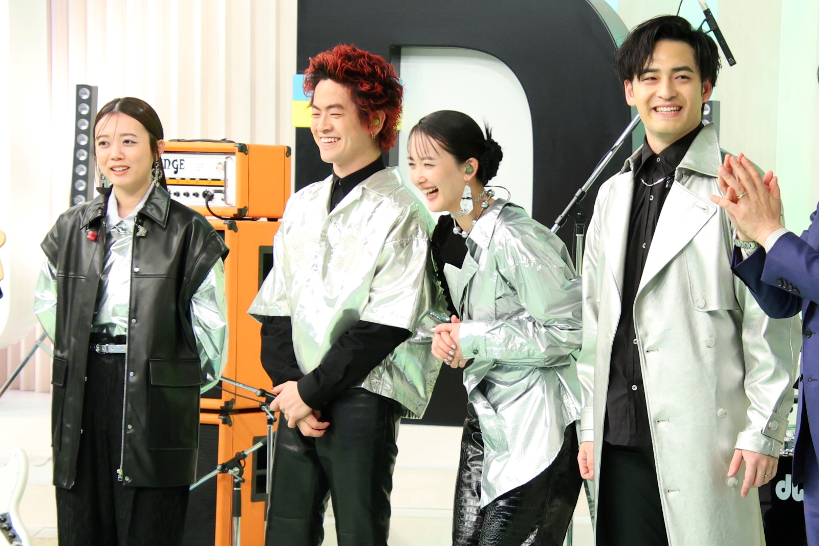 緑黄色社会が、2月19日(水)日本テレビ系情報番組『DayDay.』(月~金/あさ9時~)の『boom boom!』コーナーに生出演。出演当日にリリースされたアルバム『Channel U』から、アニメ『薬屋のひとりごと』第1期OP曲『花になって』、最新曲『PLAYER 1』を生パフォーマンス。entaxでは出演直後、独占インタビューを行った。