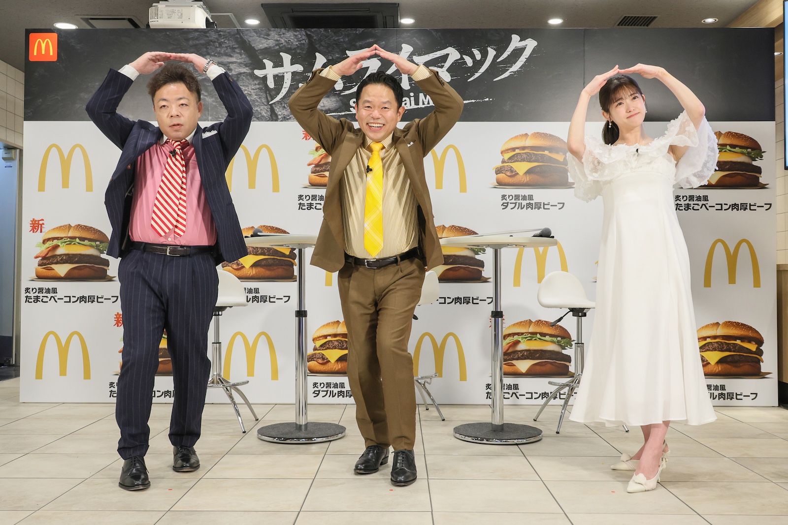 松村沙友里とダイアンのユースケと津田篤宏が、マクドナルドで販売している『サムライマック』の新レギュラー商品発表イベントに登壇した。