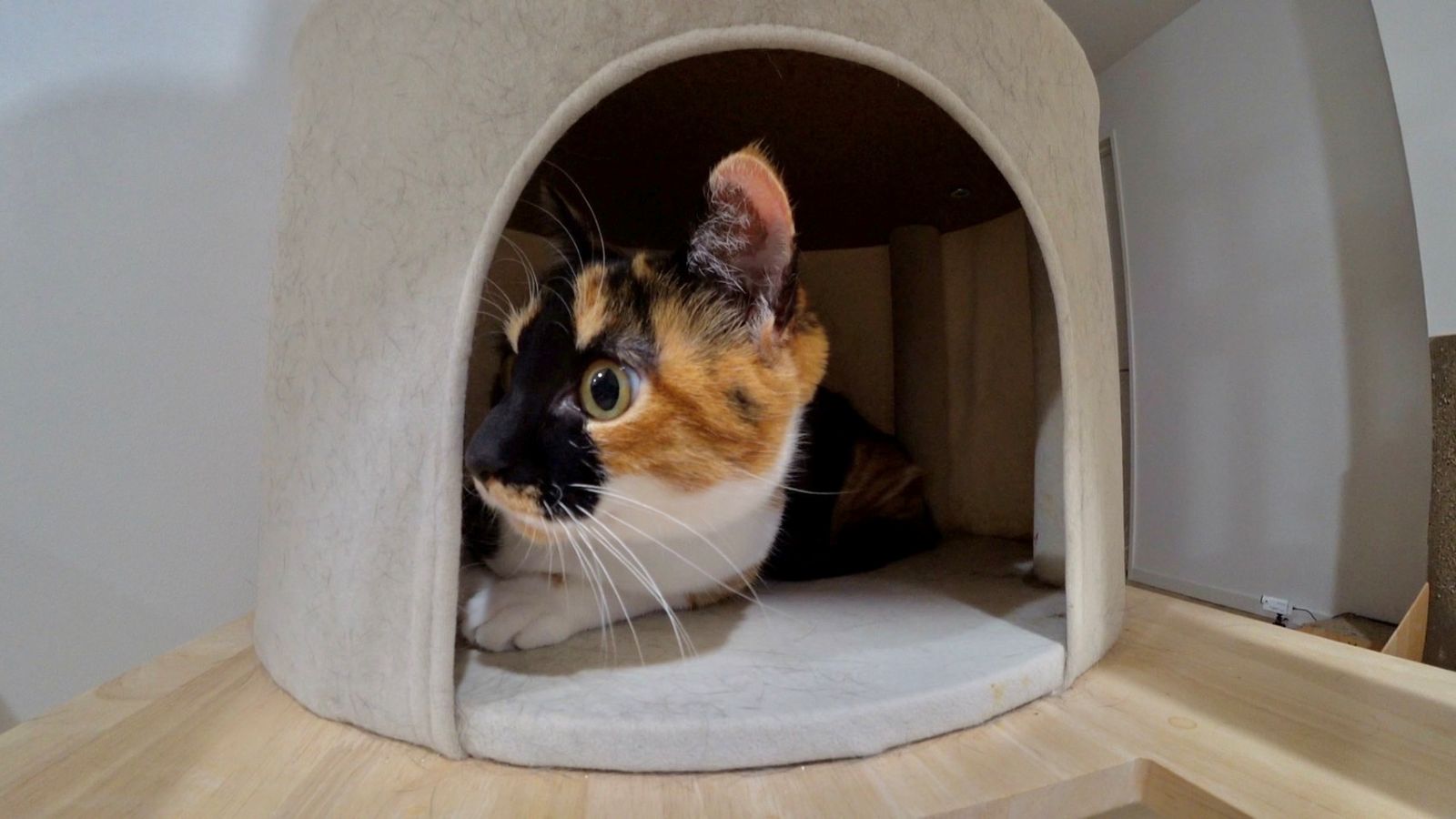 「かんでもいいから」と、山内は試しに人差し指だけをハウスの中に入れてみた。これにはブルボンも警戒したのか、軽くパンチをし「シャー」と応戦。山内は即座に「ごめんな」と謝っていた。