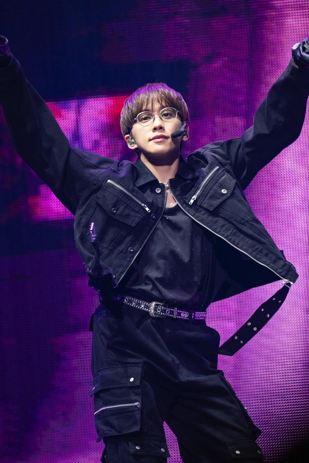 続く『T.T.M.』では、基、鈴木、椿がエッジの効いたラップを叩きつけ、ギラついた視線で客席を射抜く。観客も懸命にペンライトを振って彼らの熱に応え、ライブのボルテージはどんどん上がっていく。