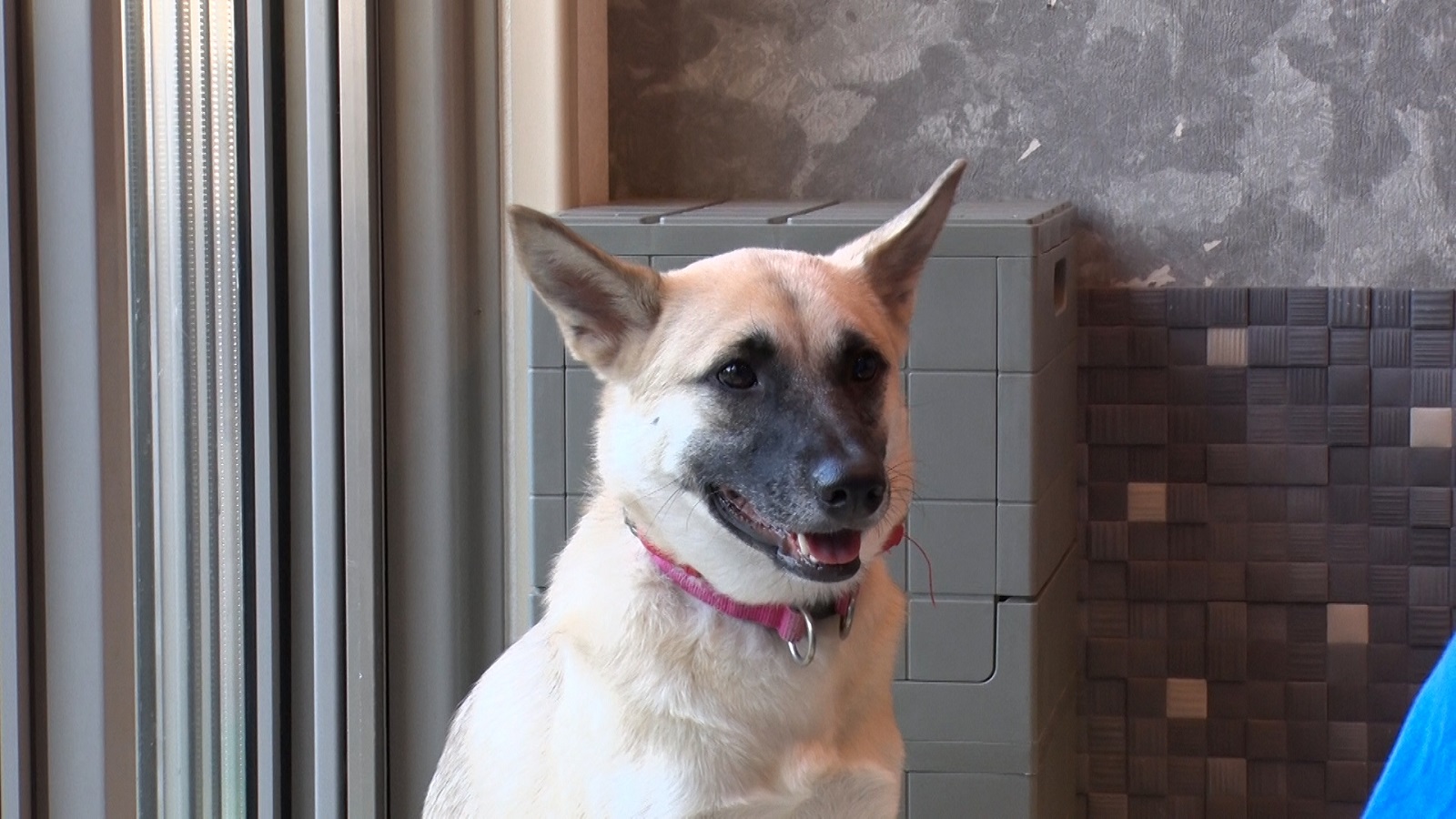 続いて対面した推定1歳のミックス犬・もんすけは、熊本で殺処分が決定していたという元野犬。先ほどのサンちゃん以上に人間を警戒し、保護されて半年が経った今でもリードを嫌がるのだという。