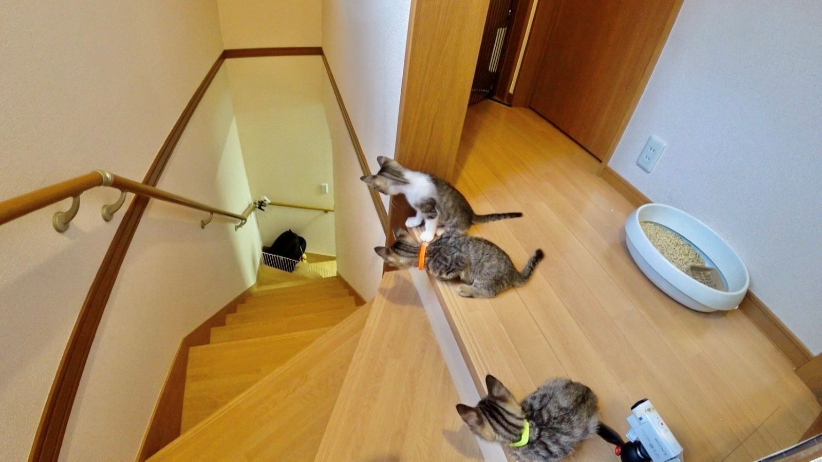 なかでも面倒見のいい先住猫・おむすびに対しては心を開き、体をすり寄せる場面も。親子でその行動範囲を少しずつ広げながら、時には大胆な行動を先住猫にとがめられながらも、徐々にみりちゃむたちとの距離を縮めていった。