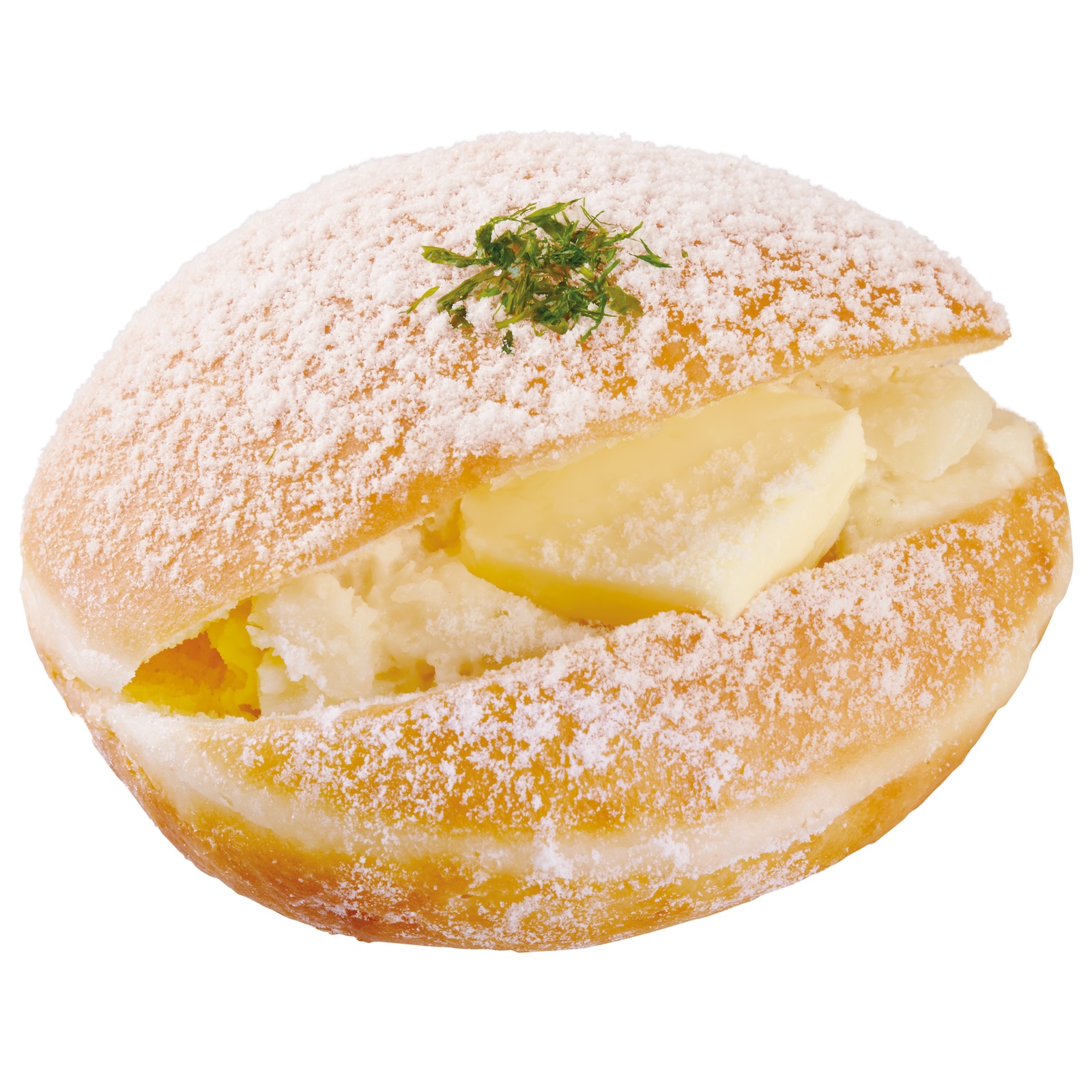 北海道産じゃがいも「さやか」を使った、ゴロっと食感のポテトフィリングに、コク深いバター風味をプラス。さらに、旨味の効いた北海道日高産昆布入りの塩と国産青のりの香りをアクセントに。ふんわりドーナツとまろやかなじゃがバターの風味がマッチする、北海道の恵みを味わう贅沢な一品。