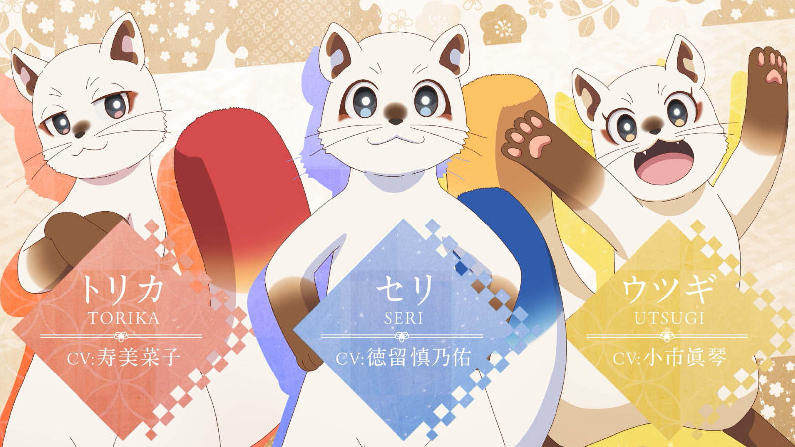 山神の眷属であるテンのトリカを演じさせてもらいます、寿美菜子です。3兄弟の中で、トリカは2番目の女の子。トロンとした可愛らしい目をしてますが、山神にもハッキリ意見したり、お兄ちゃんのセリと一緒にしっかりする時もあれば、ウツギとおふざけすることも。