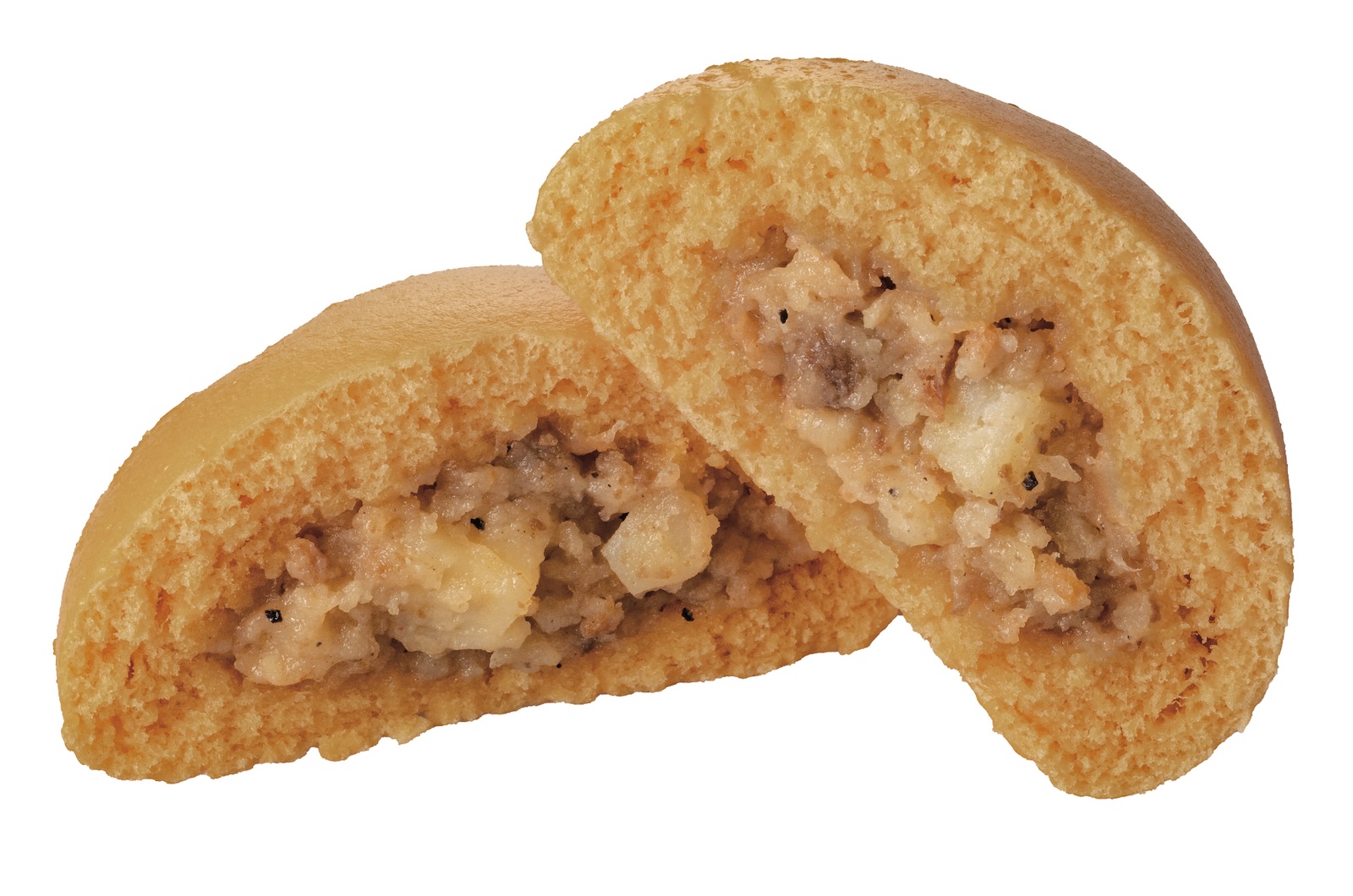 「じゃがまるくん(ポテト&ミート)」は、生地の色味やくぼみが、まるでじゃがいものようなかわいらしい見た目に、ごろっと入った北海道産じゃがいもと、旨みたっぷりのひき肉をペッパーで味付けしたホクホク感のある具材を、もっちりとした生地で包んだ新感覚の中華まん。秋の気配が深まる季節に、昭和を知る世代には懐かしく、若い世代にとっては斬新な中華まんをお届け。