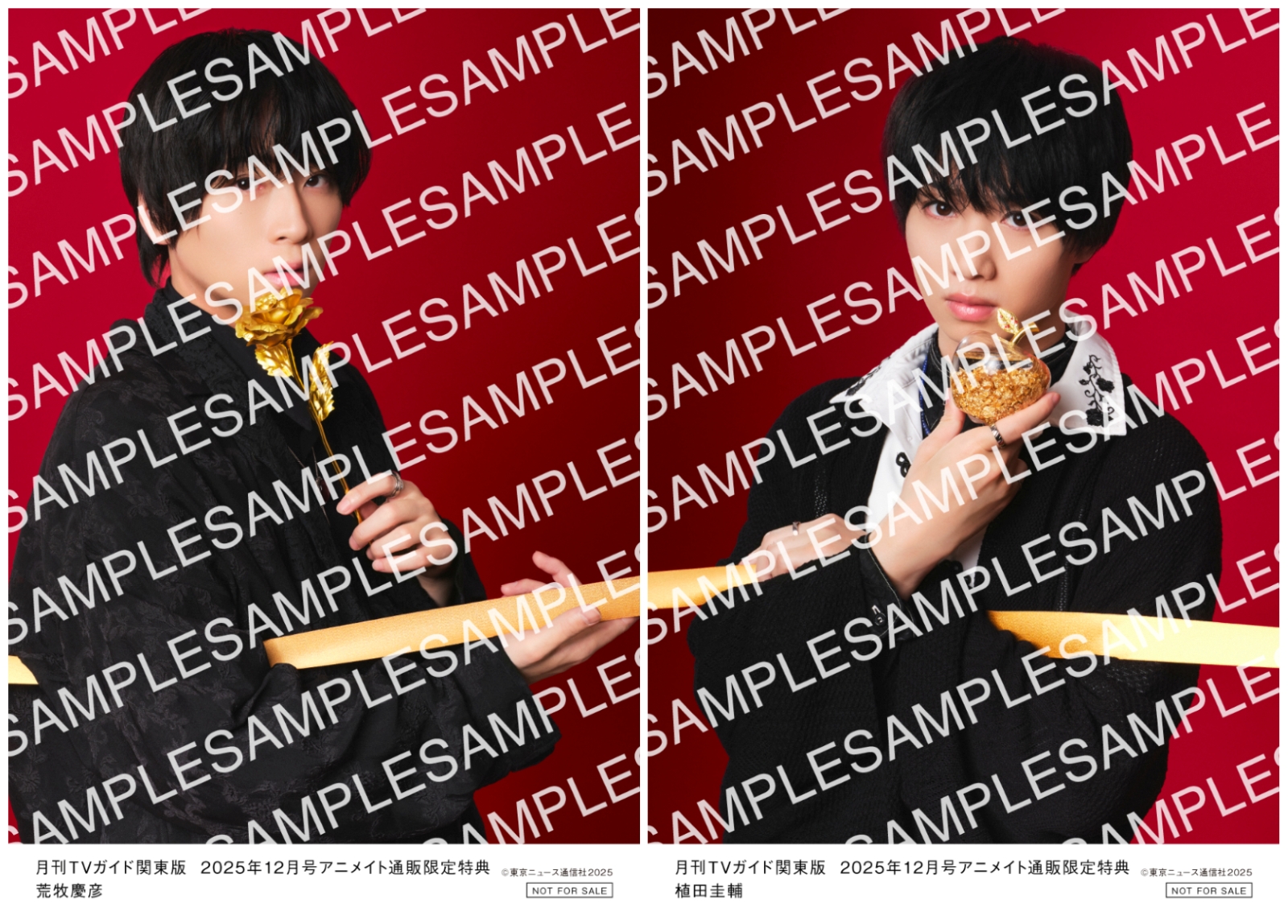なお、アニメイト通販で『月刊TVガイド2025年12月号』の関東版を購入すると、特典として全2種(荒牧、植田の各1ショット)の生写真から1種選べる限定のプレゼント企画も。荒牧と植田のここでしか手に入らない生写真となっている。