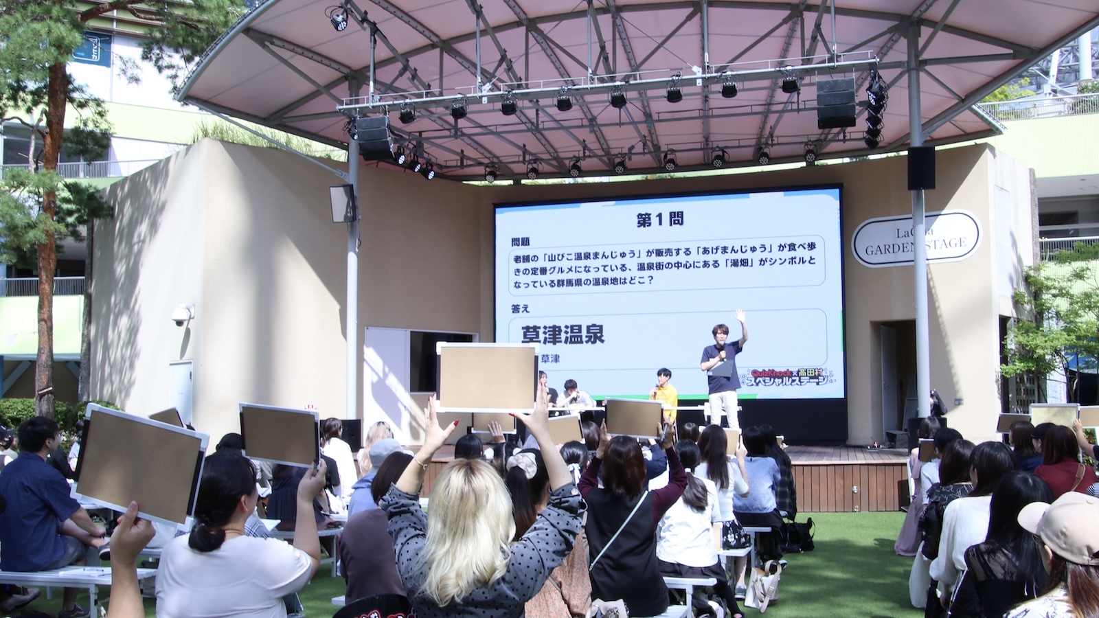 高田村チームがメインとなるこのサバイバルクイズ。実は、クイズの形式だけでなく、その内容も『高田村』メンバーに由来したものが揃えられている。それを探しながら答えを考えるのも、このクイズの楽しみ方。問題に隠されたその由来に高田村チームが気づいた瞬間は、会場のファンも大きくうなずいたり拍手を送ったり──その度に会場の一体感が増していくような印象を受けた。