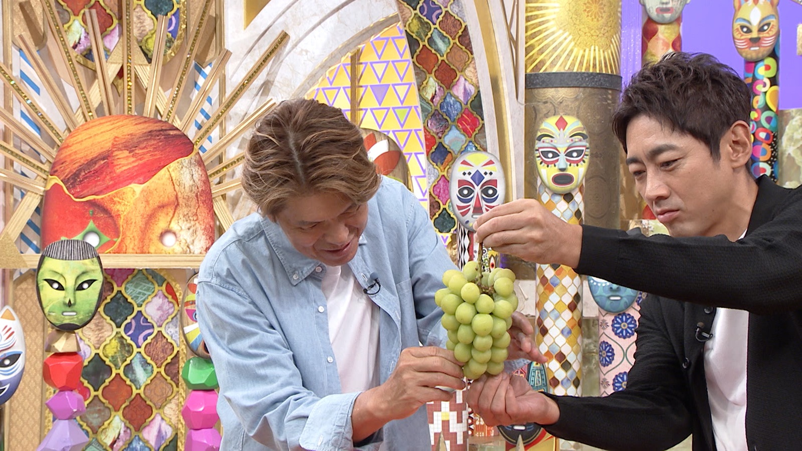 飯塚さんが育てたシャインマスカットがスタジオに登場。下の粒から上にいくほど甘みが強くなるのが特徴で、下から食べ始めると最後まで甘さを楽しめるのがおすすめだという。早速、ヒロミと孝太郎が下の粒から口に運ぶ。「うまい!」とヒロミが声を上げると、孝太郎も「みずみずしいですね」と目を細める。さらに上の粒を食べてみると、その甘さに思わず「甘〜い!」と感嘆。するとヒロミは「人に言うときは逆に言おう」と、ちょっとした意地悪心をのぞかせて笑いを誘うのだった。