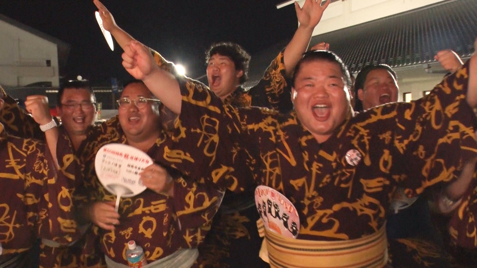 パフォーマンスが終わり、いよいよ結果発表。3位から順番に読み上げられるチーム名。優勝候補筆頭は『JAふくしま未来』だったが、結果は2位。そして「優勝は、エントリーナンバー25番、大相撲・玉ノ井部屋力士の皆さんです」とのアナウンスが。弾けるようにガッツポーズを見せ喜ぶ力士たち。なんと15年ぶりの優勝だという。手厚く支援してくれる相馬の人たちとの絆が、さらに深まった夜。力士たちは満足そうな笑顔を見せていた。