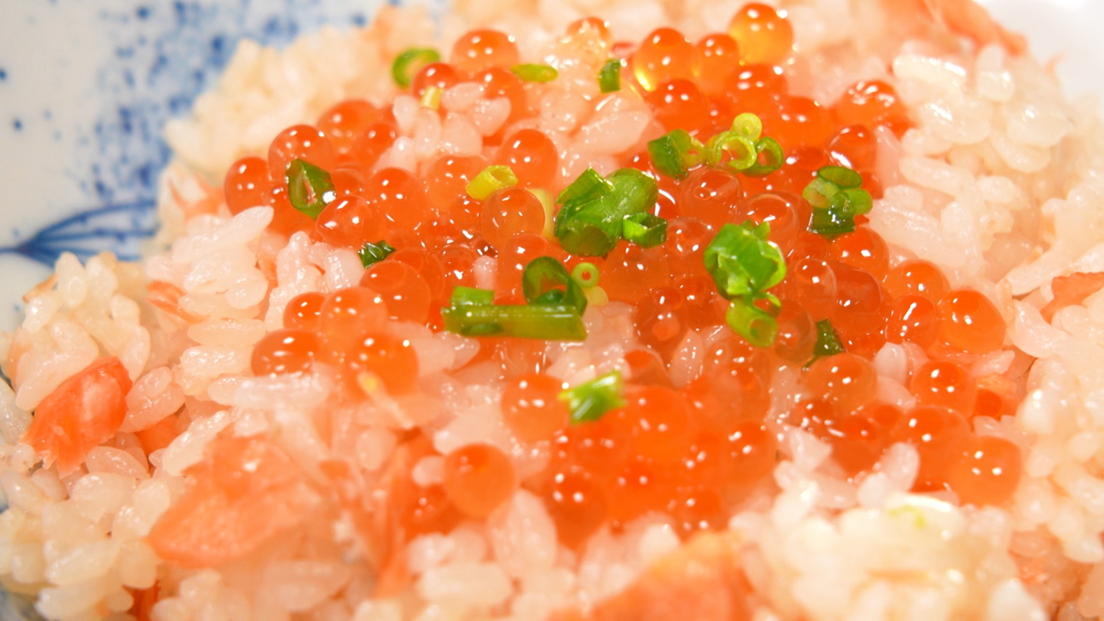 海鮮を使った料理はもう一品。下ゆでした鮭を丁寧にほぐし、さらに鮭を湯がいた煮汁に、みりん、白だし、しょう油を加え、これでご飯を炊く。炊きあがったらフレークにしたシャケを混ぜ、仕上げにたっぷりのイクラを乗せれば『超贅沢はらこ飯』が完成。これを力士たちが爆食できるよう10kg用意した。