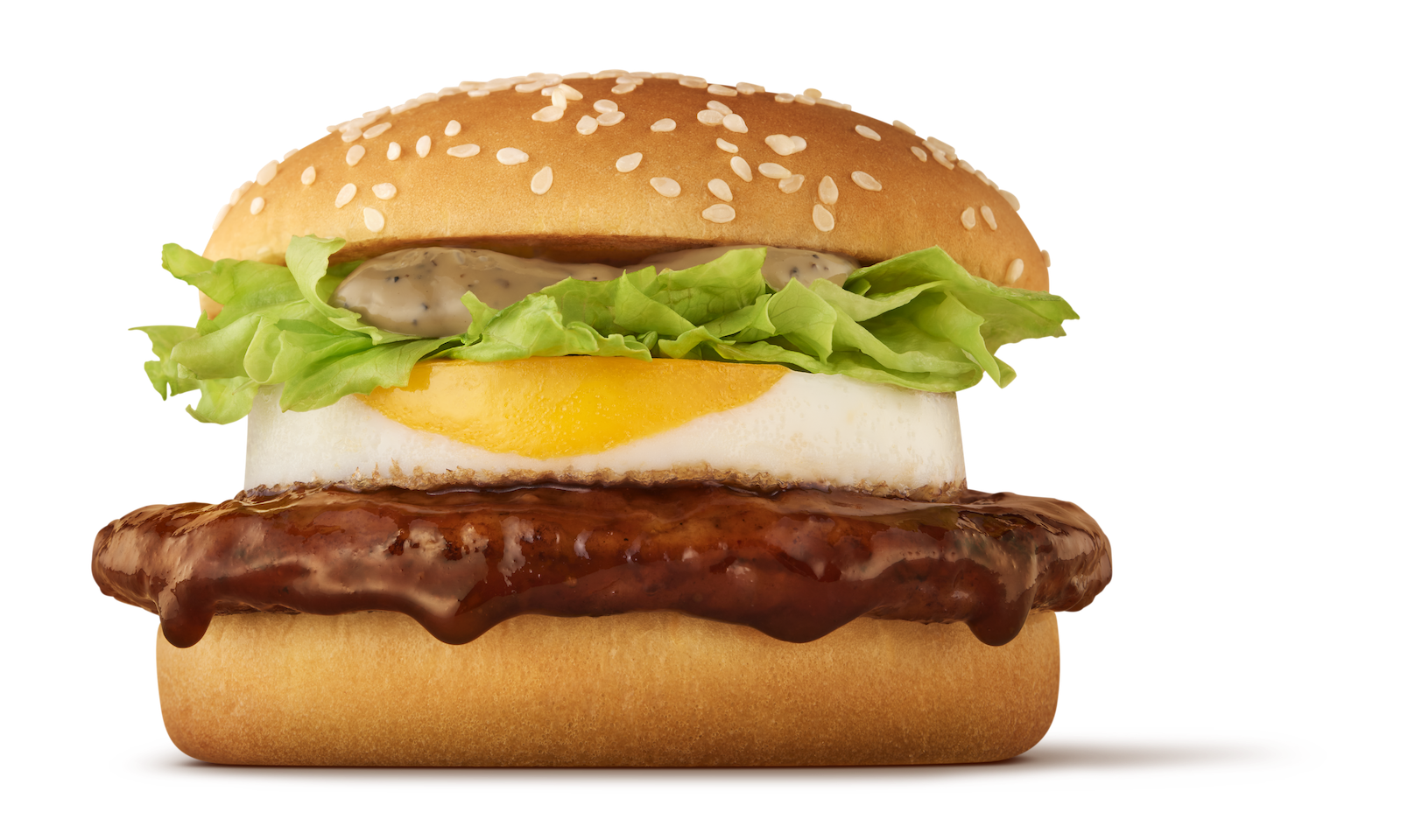 「焦がしにんにくマヨたまごてりやき」は、道着を着用したメインキャラクターのリュウをイメージした商品。てりやきマックバーガーに、ローストガーリックとたまり醤油のうま味が特長の焦がしにんにくマヨと、ぷるぷるのたまごを合わせた一品。