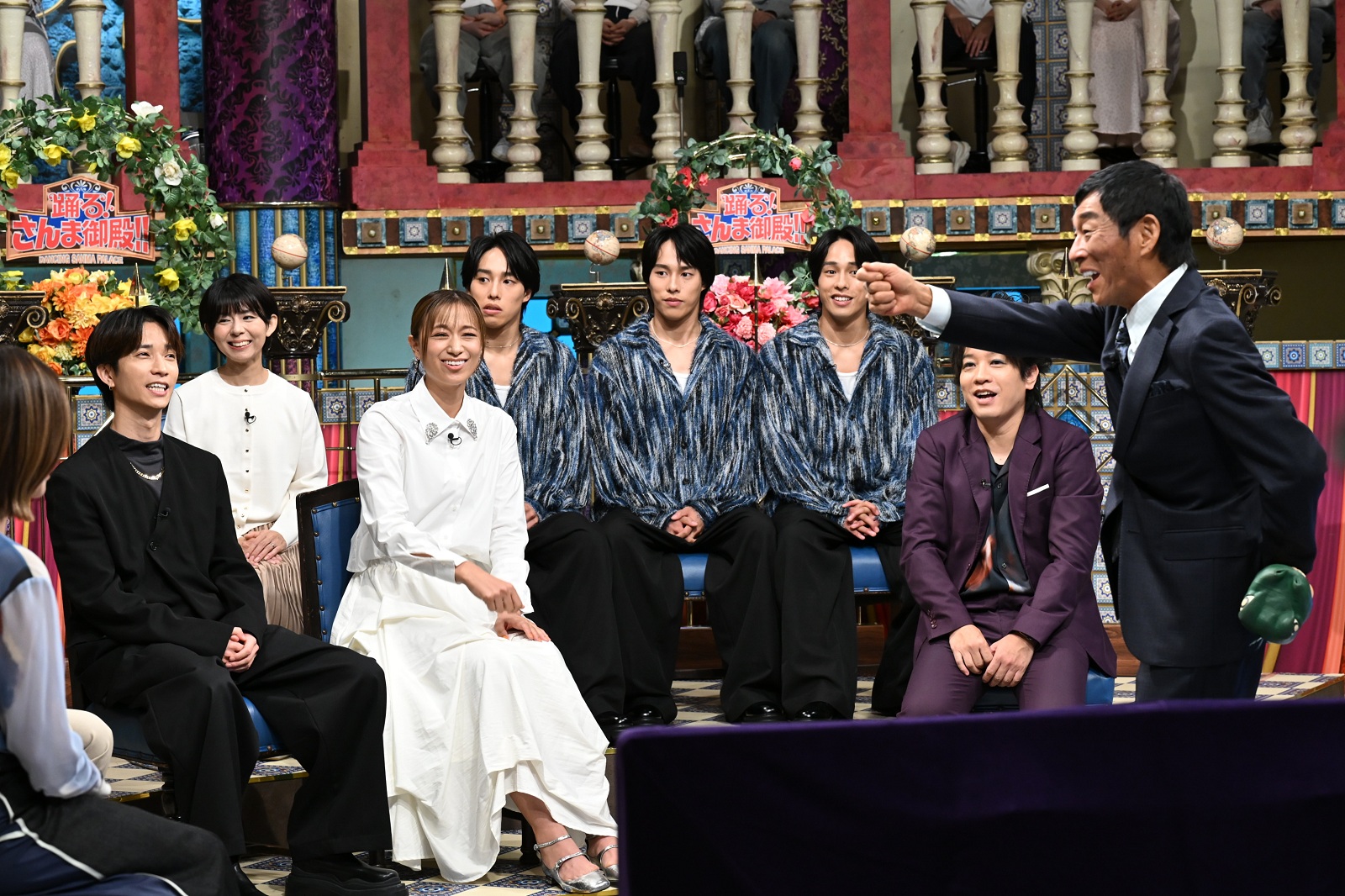 さんまは「そんなスーパーアイドルあかんで」とツッコみ、スタジオで笑いが起きるなか、「先輩からの教えちゃうやろ?」と指摘するが、「じゃないです。僕たちが、できるだけ貯めたほうがいいだろう」とメンバーたちは考えているそうだ。「我々の商売は夢を売らなあかんねんで」というさんまだが、田中は「それはステージで歌って踊っていれば、それがもう」と、パフォーマンスで夢を売るのが仕事と答えた。