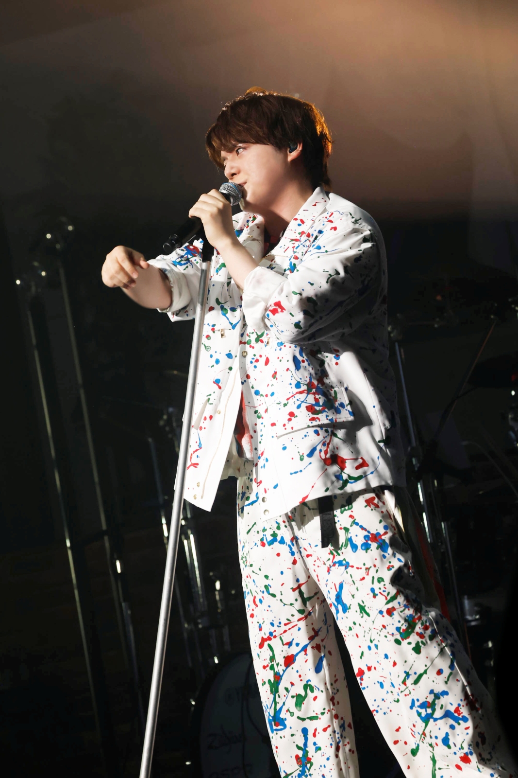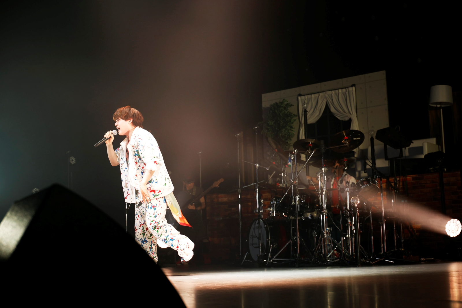 キーボード・半田彬倫、ギター・佐藤裕晃、ベース・二家本亮介、ドラム・今井義頼から成るバンドの生演奏がサポートした本公演は、本ツアーの顔とも言うべき挑戦的なナンバー「アトリエ」でスタート。ステージ上段上手側のアトリエ風のスペースに登場した内田が、2つのキャンバスを覆っていた布を両手で同時にはぎ取るとマーブル模様のペイントアートが登場。