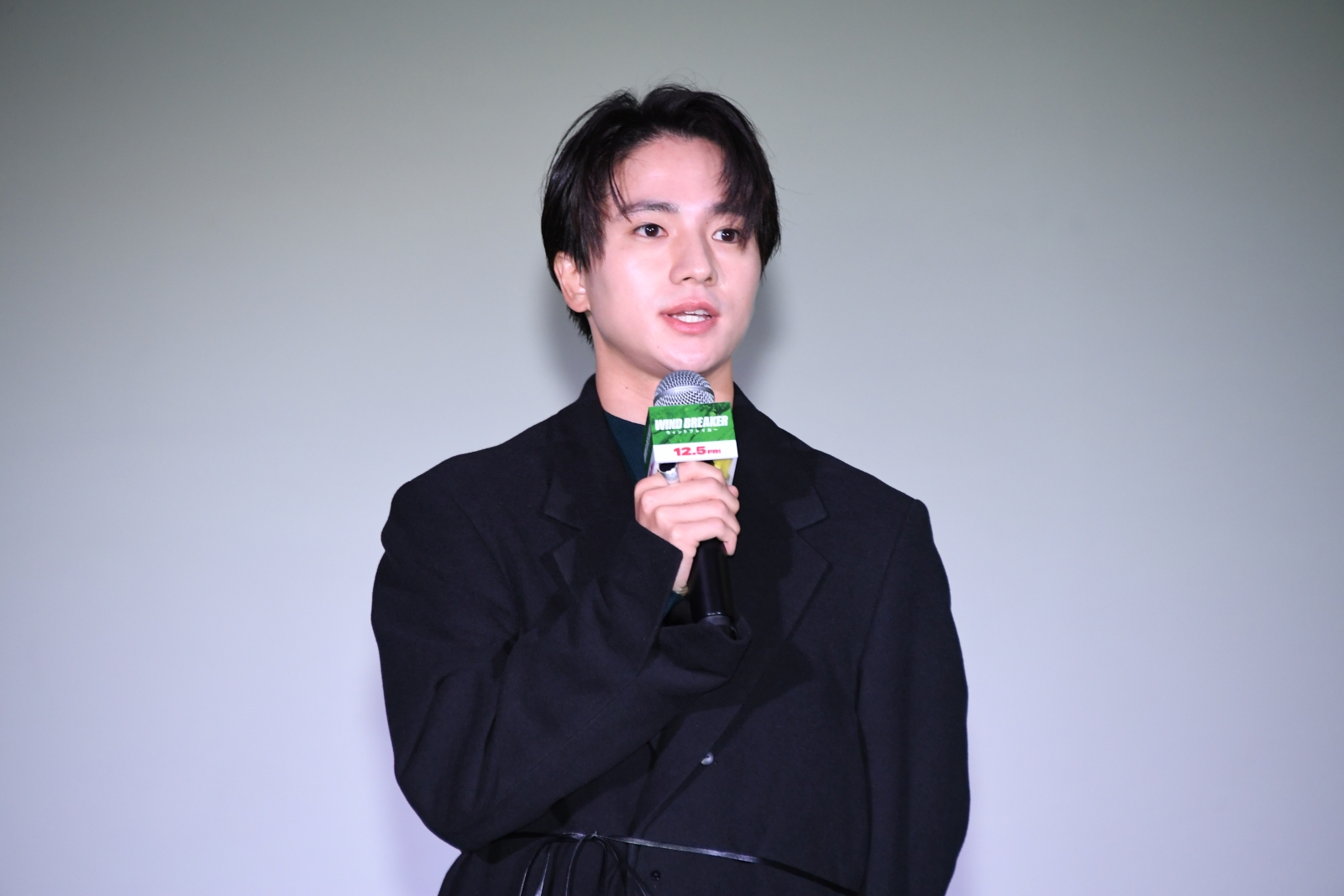 ケンカはめっぽう弱いが情報収集に長けた楡井秋彦(にれいあきひこ)を演じた木戸大聖は、「まず原作を拝見して、にいさとる先生の『WIND BREAKER』へのリスペクトをしっかり持って臨みたいと思いました」と真摯な思いを語る。続けて、「二次元のキャラクターを三次元で、人間として生きている存在にする――その難しさに、クランクインまでは正直不安もありました。でも萩原監督と作品を創り上げていくうちに、自分の中で少しずつ“楡井”という人物像が確立していくのを感じました」と、役との向き合い方を振り返った。