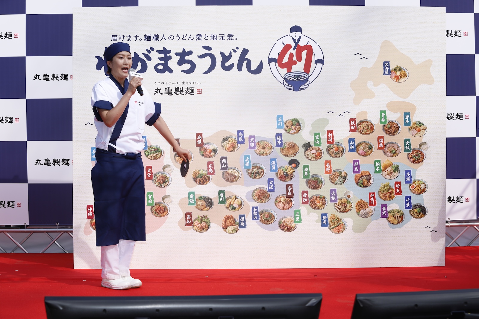 【丸亀製麺】各都道府県の食材を生かした47種類の完全新作うどん『わがまちうどん47』発表!上戸彩も目がくぎづけ「それぞれの地域のおいしい食材を使ってる感じ」