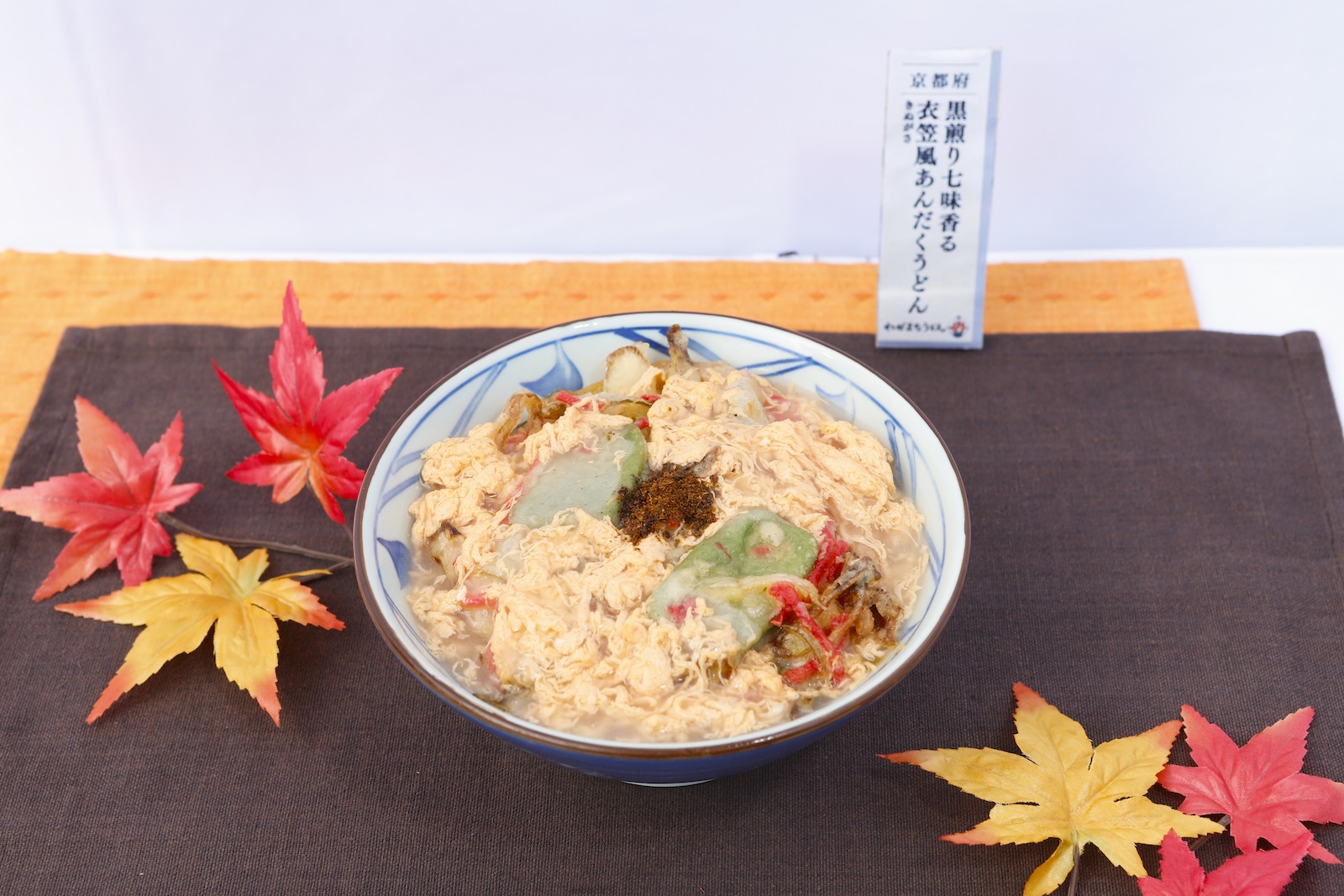 イベント後半では、上戸が丸亀製麺にまつわるクイズに挑戦。第1問は「麺職人は昨年の全店配置から何名増えたか?」という問題。上戸は「200人であってほしい!」と悩みながらも回答し、見事「約200人」という正解を引き当てた。続く第2問は、実際に『わがまちうどん47』から1つを試食し、どの都道府県のうどんかを当てるクイズ。登場したのは、ふわふわの卵あんに九条ねぎや生麩(なまふ)がのった一杯。上戸はうどんを見るなり「私もう分かりました」と自信満々。一口食べると「めっちゃおいしいです」と満面の笑みを見せ、「京都です」と即答。京都に行ったら生麩の田楽を必ず食べるというほどの大好物だという生麩が決め手となり、京都府限定の『黒煎り七味香る、衣笠(きぬがさ)風あんだくうどん』であることを見事的中させた。