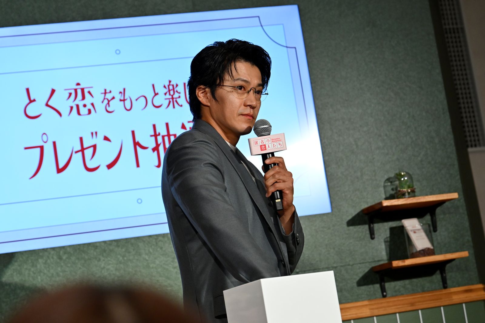 ラストは感謝の気持ちを込めて、とく恋プレゼント抽選会のコーナーに。中村、ヒョジュ、小栗の順番でそれぞれ番号を引き、三名のファンが選ばれた。檀上でキャストたちとの記念撮影も行われ近距離ファンサービスも!