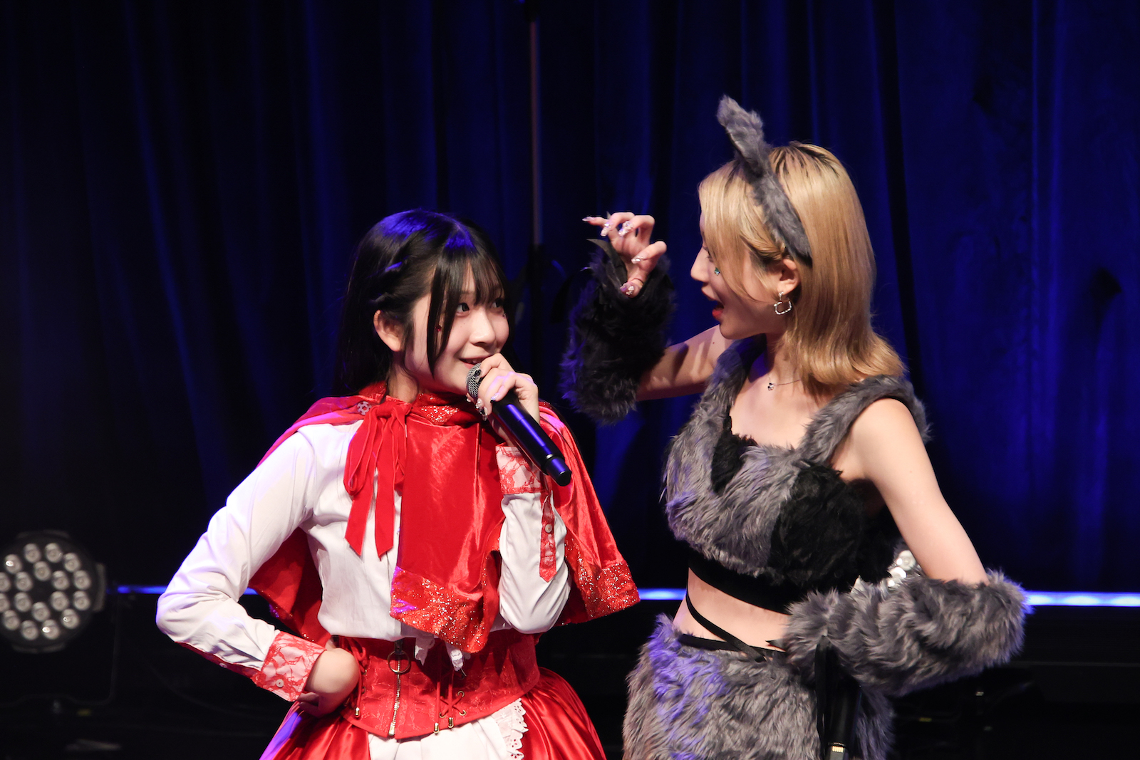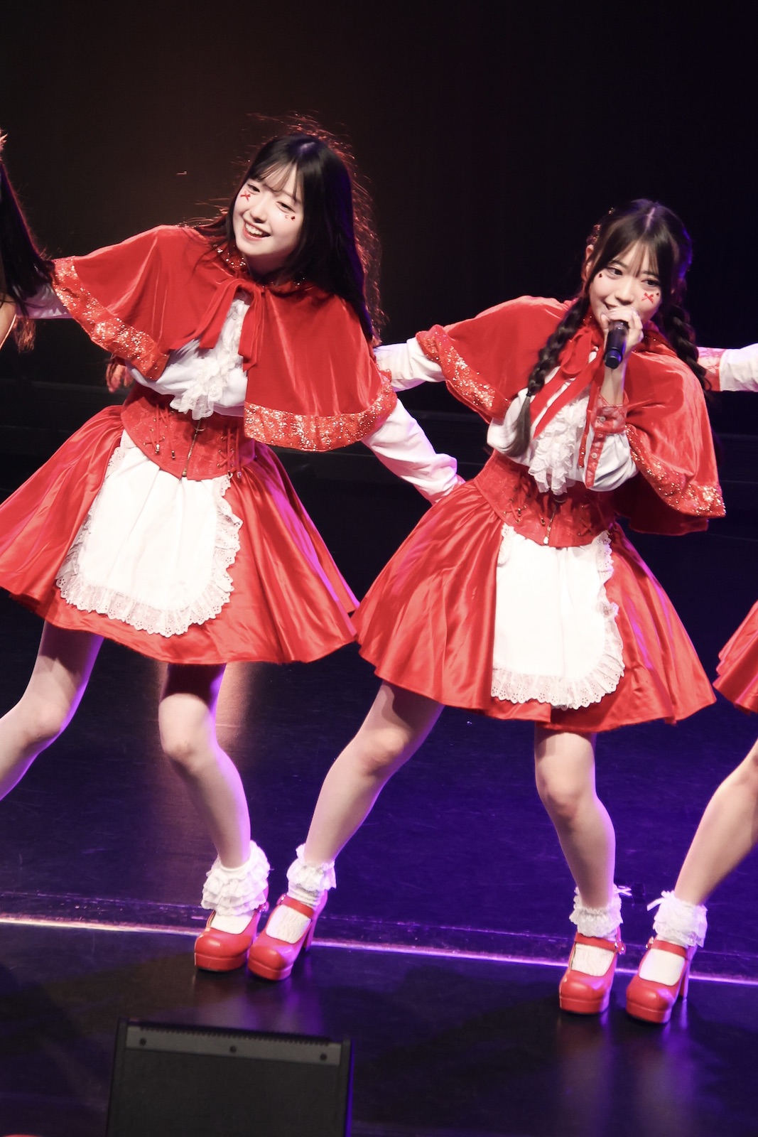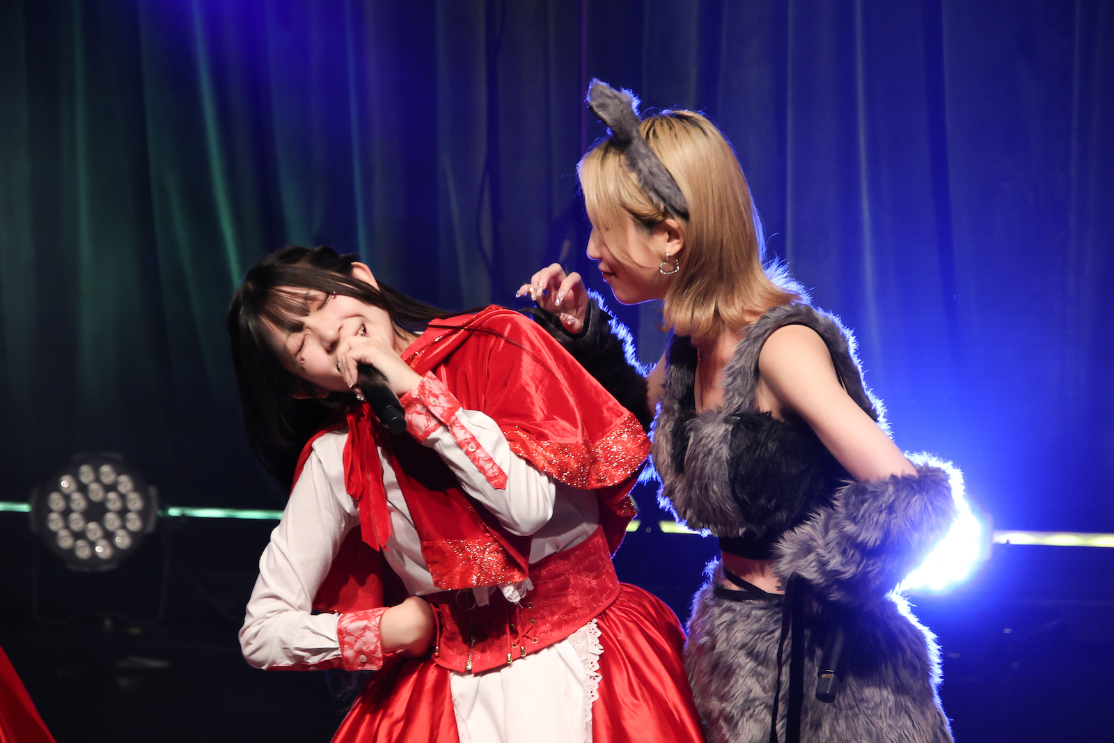 この日はハロウィン仕様の公演ということで、海月らな・黒田れいがオオカミ、有村南海・森斗咲羽・華山あかり・橘杏來・織多莉鈴・森山結友が赤ずきんに。メンバーがこの日限りの特別な衣装姿で登場した瞬間、客席からは「かわいい!」と思わず歓声が上がった。