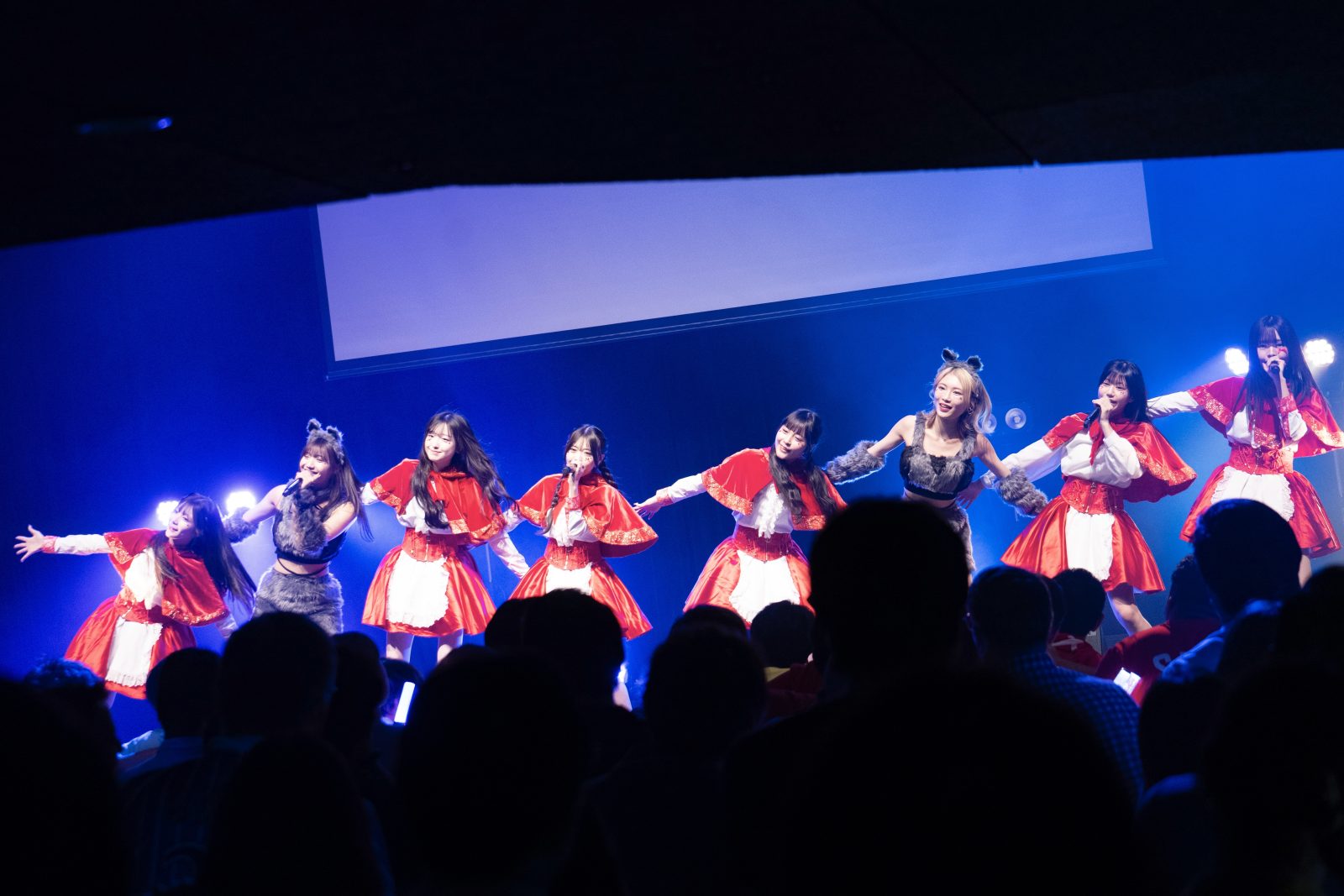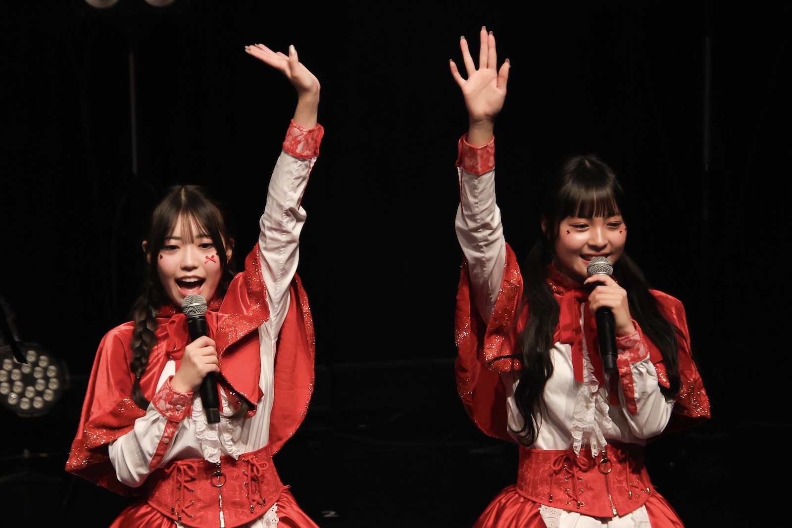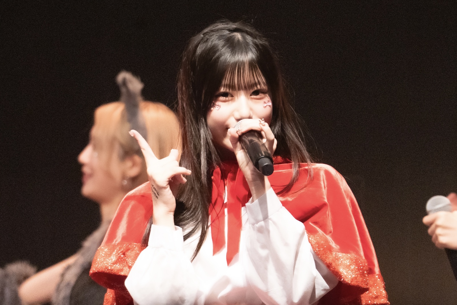 この日はハロウィン仕様の公演ということで、海月らな・黒田れいがオオカミ、有村南海・森斗咲羽・華山あかり・橘杏來・織多莉鈴・森山結友が赤ずきんに。メンバーがこの日限りの特別な衣装姿で登場した瞬間、客席からは「かわいい!」と思わず歓声が上がった。