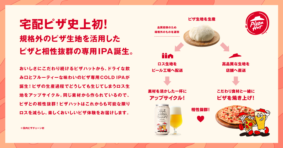 規格外のピザ生地をアップサイクルした「THE PIZZA CRAFT」がピザハットから登場。ピザとの相性を追求した究極のCOLD IPAを10月27日(月)から提供開始。