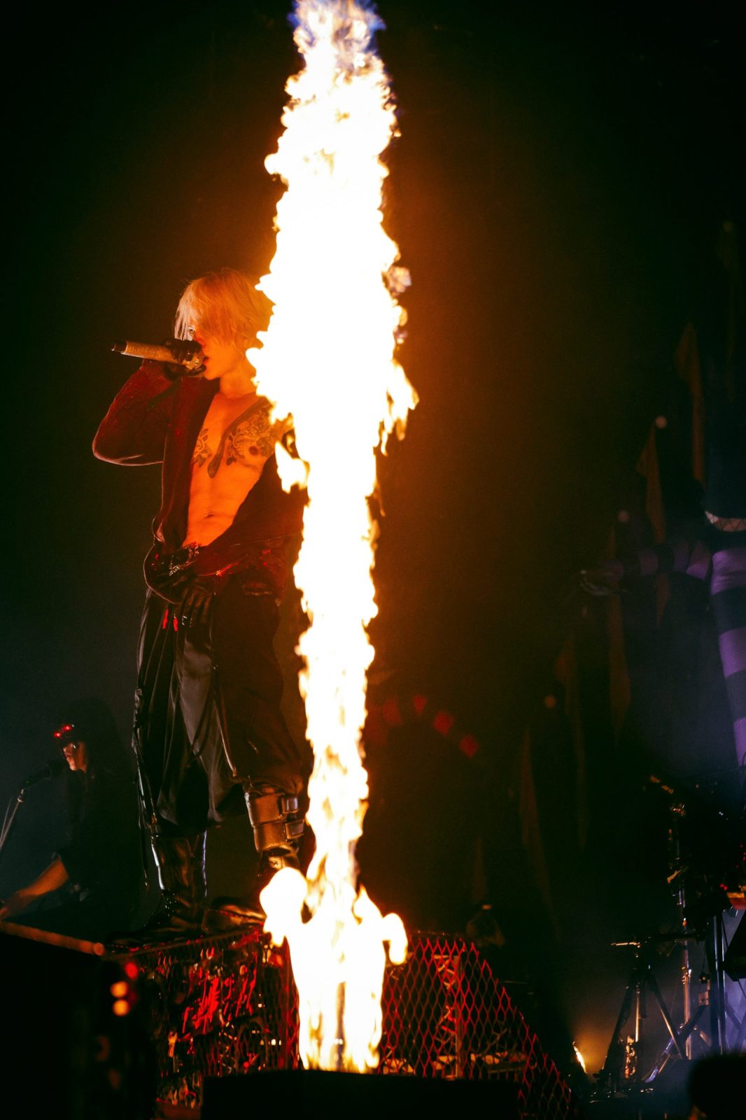 終盤戦、HYDEはオーディエンスへの感謝と再会の約束を告げると、オーラスの「SEX BLOOD ROCK N’ ROLL」まで一気呵成(いっきかせい)に駆け抜けた。「命を燃やせ!」「悔いを残すな!」、ありったけの声を張り上げて客席を鼓舞してはステージを走り回り、またもフロアに降りと縦横無尽に暴れ倒し、最後の最後はドラム台の上から「えいやっ!」と見事なジャンプで大団円。「また帰ってくるからな!首を洗って待ってろよ!」、去り際のいつもの決め台詞がことさらに嬉しく胸に刻まれた。