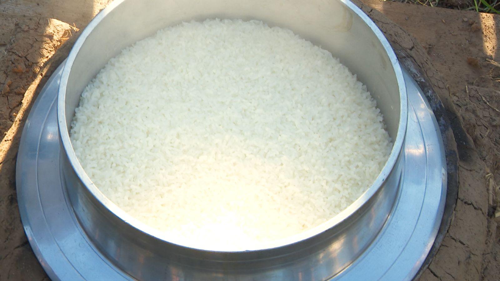 後日、脱穀と精米を終え、待望のかめどを使う時が。着火剤となる杉っ葉を敷き、着火。火種が消えないように注意を払いながら杉っ葉を足していく。慣れない着火作業にてんやわんやしながらも、新米の入った釜をかめどにセットし、火加減を調整。最後に余熱で20分ほど蒸し、いよいよ炊き上がり。