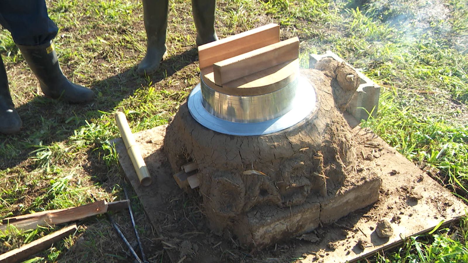 不安げに成り行きを見守る一同だったが、少し位置をずらし、藤原はその後もめげずに穴を掘り続け、ついに貫通した。その後、松岡も協力して、ノミで穴の範囲を広げ、かまどに高さを出すために土を足して、かめどを完成させた。