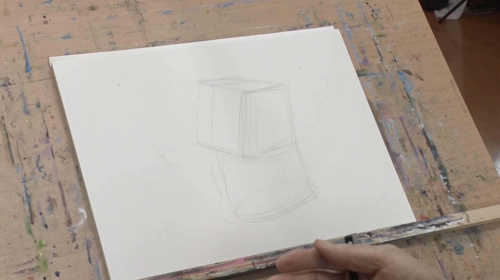 神ポイントその①『動物は図形に当てはめる』。犬の顔は立方体、首の部分は円筒形だ。続けて神の頭にある黄金比の位置に鼻・目・耳を描いていく。神ポイントその②『輪郭は後から削っていく』。「石で彫刻を彫ってる感じです。最初から細かいところ彫れないじゃないですか。まずは粗彫りで大きく彫っていく、それからだんだん細かく彫る。そういう感じなんですよ」と柴崎さん。その後写真と見比べながら、微調整を施し、余分な線を消せば、下書きが完成。
