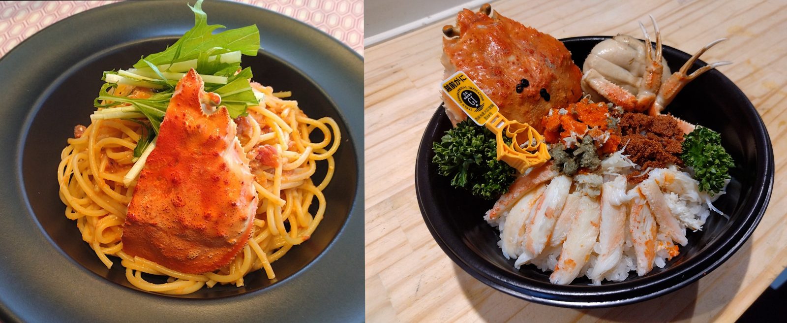 越前ダイビング浜富旅館が運営するキッチンカー『なぎまる kitchen』からは、メスの越前がにを使ったセイコガニ丼やセイコガニパスタが登場するほか、『武⽣製麺』からは福井県と北海道の直営農場で栽培した蕎⻨の実を⾃社で製粉・製麺した⾃慢の越前そばが登場する。
