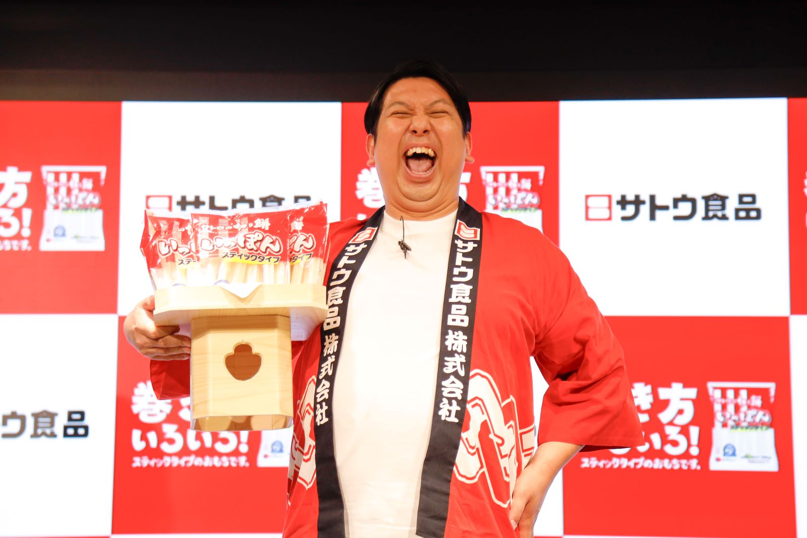 イベント冒頭、池田一人で登場し進行していたところ、突如赤いはっぴ姿の「1本祭り男」に扮して登場したジャンボは、「11月11日はサトウの切り餅1本の日とさせていただきます」と宣言し、会場を沸かせた。