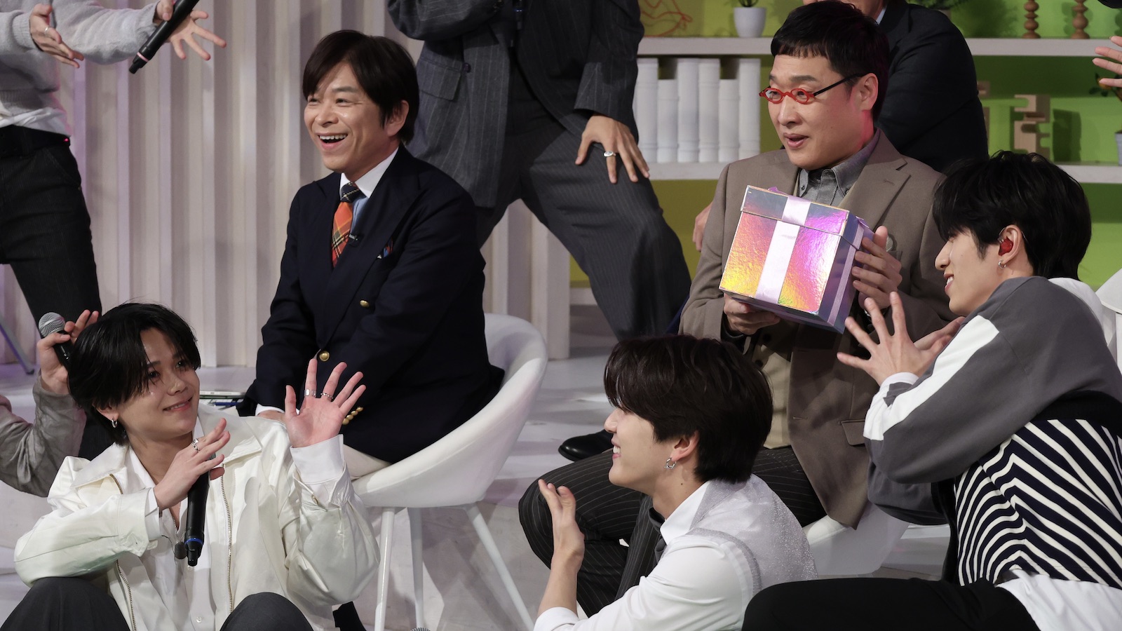 このサプライズ演出に山里は「ちょとなぁに!あわてんぼうのサンタクロースさん!」と照れくさそうにボックスを開封。中に入っていたのは「INIからのプレゼント♡」とメンバーの直筆メッセージが書かれたWINTER SINGLE『THE WINTER MAGIC』のCD。山里は「ハート届きました、ありがとうございます。心臓捧げます」と感謝を伝え、笑いに包まれた。